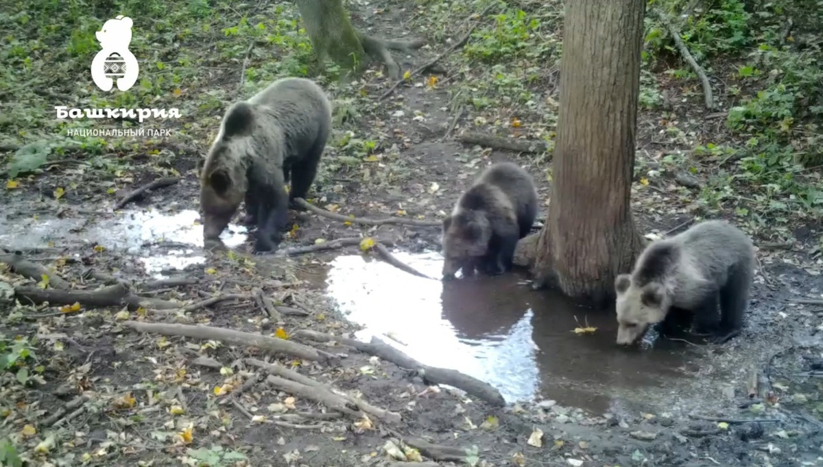 В национальном парке «Башкирия» фотоловушка запечатлела семейство косолапых, маму и малышей, на водопое. Мишки пришли на водопой к ручью. Мама решила тут же отдохнуть. Но резвые малыши не давали ей покоя. Они напились, и почесали спинки, и искупались, а потом стали приставать к медведице.