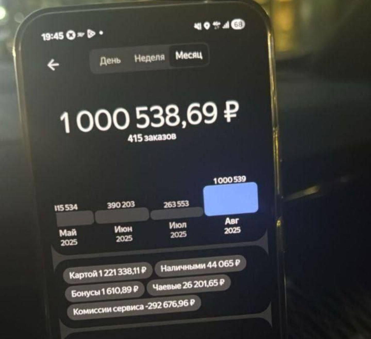 Забыл уточнить: на том скрине красуется выручка в миллион по таксометру, до вычета всех расходов. Это не чистая прибыль, а так, красивая цифра для Instagram.