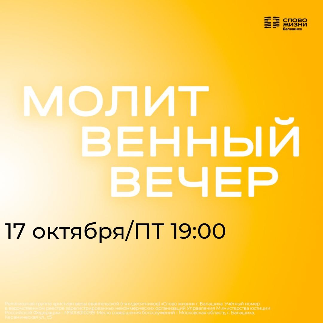 Приглашаем сегодня, 17 октября, в 19:00 на молитвенный вечер в церкви! #wolrus_balashiha