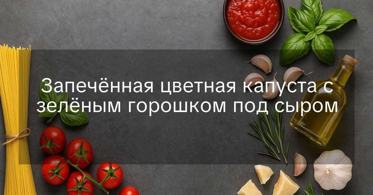 Это блюдо порадует вас своим ярким вкусом и ароматом. Запечённая цветная капуста с зелёным горошком под сыром — простое и полезное угощение, которое можно подать как на завтрак, так и на ужин. Время подготовки: 10 мин. Время приготовления: 20 мин. Количество порций: 1 шт. Вид кухни: русская Назначение: диетические блюда В чём готовить: в духовке Горошек зелёный свежий — 30 г