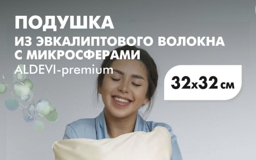 Каждая женщина мечтает просыпаться свежей, отдохнувшей, без отеков и заломов на лице. А кто из нас не сталкивался с бессонницей, головными болями или дискомфортом после напряженного дня? Оказывается, решение этих проблем может быть ближе, чем кажется – прямо у вас под головой! Представляем вам не просто подушку, а настоящий оазис для вашего тела и души: подушку из эвкалиптового волокна с микросферами ALDEVI-premium. Это изделие создано специально для того, чтобы подарить вам: Эвкалиптовое волокно: природная забота о вашей коже и дыхании Наволочка нашей подушки выполнена из уникального эвкалиптового волокна – материала, который обладает целым рядом неоспоримых преимуществ: Подушка ALDEVI: Секрет женской красоты и молодости Но уникальность подушки ALDEVI не только в комфорте! Это ваш личный косметолог, работающий, пока вы спите: ALDEVI – помощник для вашего здоровья! Эта подушка станет настоящей находкой для тех, кто сталкивается с различными проблемами со здоровьем: Борьба с бессонницей