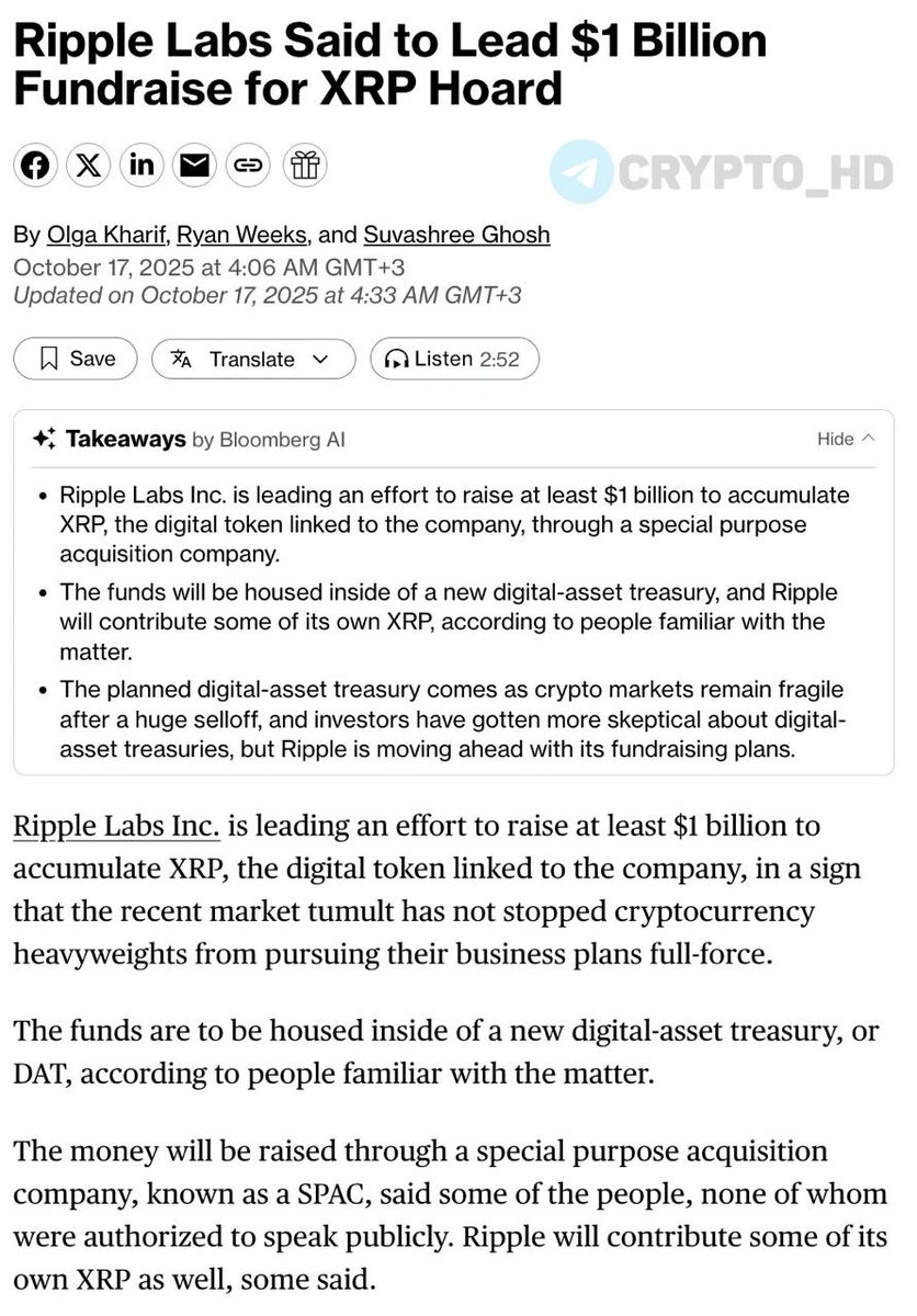 🔥 Bloomberg: Компания Ripple собирался привлечь $1,000,000,000 для создания XRP-резерва.