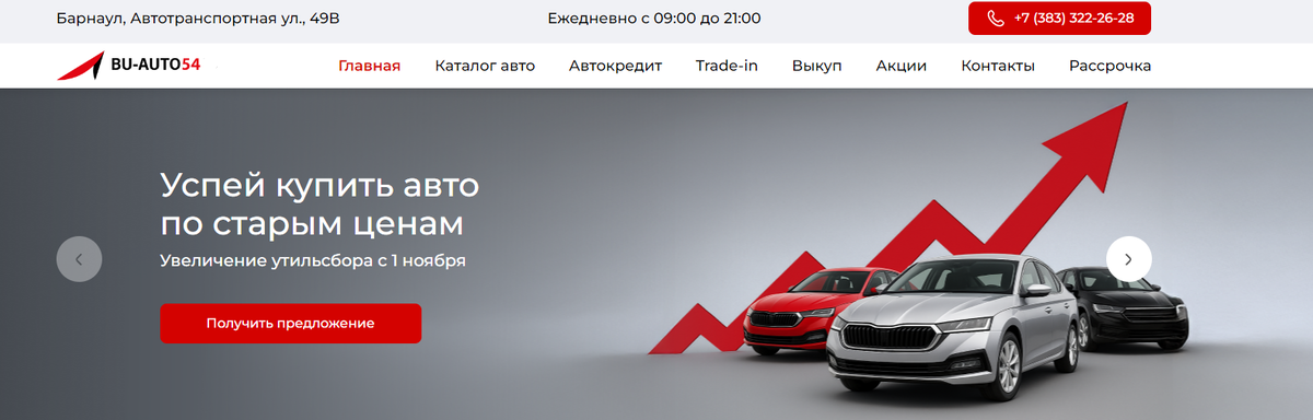 BU AUTO54 — это автосалон в Барнауле. Занимается продажей подержанных автомобилей. Судя по всему является рекламным лендингом. Данные реального дилера неизвестны. В автосалоне на Автотранспортной 49В в Барнауле можно купить автомобиль с пробегом. В каталоге представлено более 20 марок. Наше внимание привлекли следующие моменты: Все это стало поводом для нашей проверки. Владельцем автоцентра BU AUTO54 является ООО "Империя Авто" (ИНН: 2222906449). По крайней мере, так написано в футере сайта. Вероятнее всего, компания является подставной или ее официальные представители не знают о том, что их данные используются на этом сайте. Такие выводы мы сделали по ОКВЭДу — Деятельность, связанная с использованием вычислительной техники и информационных технологий, прочая (62.09). Владелец дилерского центра BU AUTO54 не имеет никакого отношения к продаже автомобилей, поэтому проверка данного пункта при имеющихся данных не имеет смысла. Об автосалоне BU AUTO54 нет отзывов на картах. Вместо него