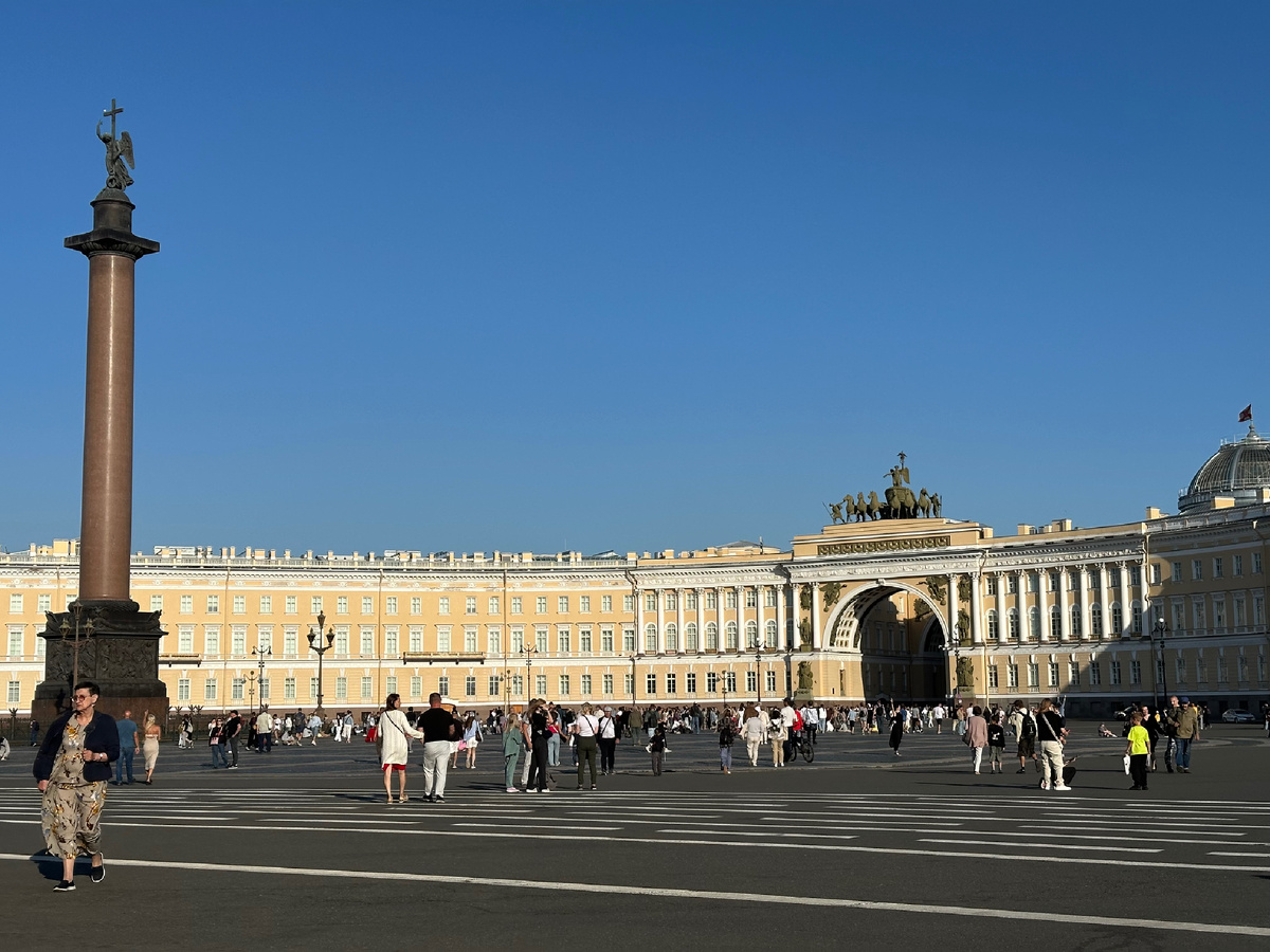 После Петропавловки, мы отправились… нет, не домой, я предложила Дане сходить на Дворцовую площадь. Наверное нет такого человека, который бы посетил Санкт-Петербург, и обделил вниманием это самое, на мой взгляд, притягательное место Питера. Знаете, в тот день я снова словила себя на одной мысли. Было уже под вечер (в 18.30 мы были в самом сердце города на Неве), и шли через Дворцовую площадь. Не по делам, а просто так, ноги сами понесли. И вот стоит она, вся в этом золотом вечернем свете, и дух захватывает. Не от масштаба даже (хотя, конечно, от него тоже), а от какой-то невероятной, накопленной за сотни лет энергии. И я подумала : мы же все про неё вроде бы всё знаем, да? Зимний дворец, Александрийский столп, арка Главного штаба. Открытка, по сути. Но на самом деле Дворцовая — она настолько живая, что любой голливудский блокбастер отдыхает. Вот смотрите. Представьте, вы выходите из-под арки на брусчатку. Под ногами — те самые камни, которые помнят и цокот карет, и гулкие шаги императ