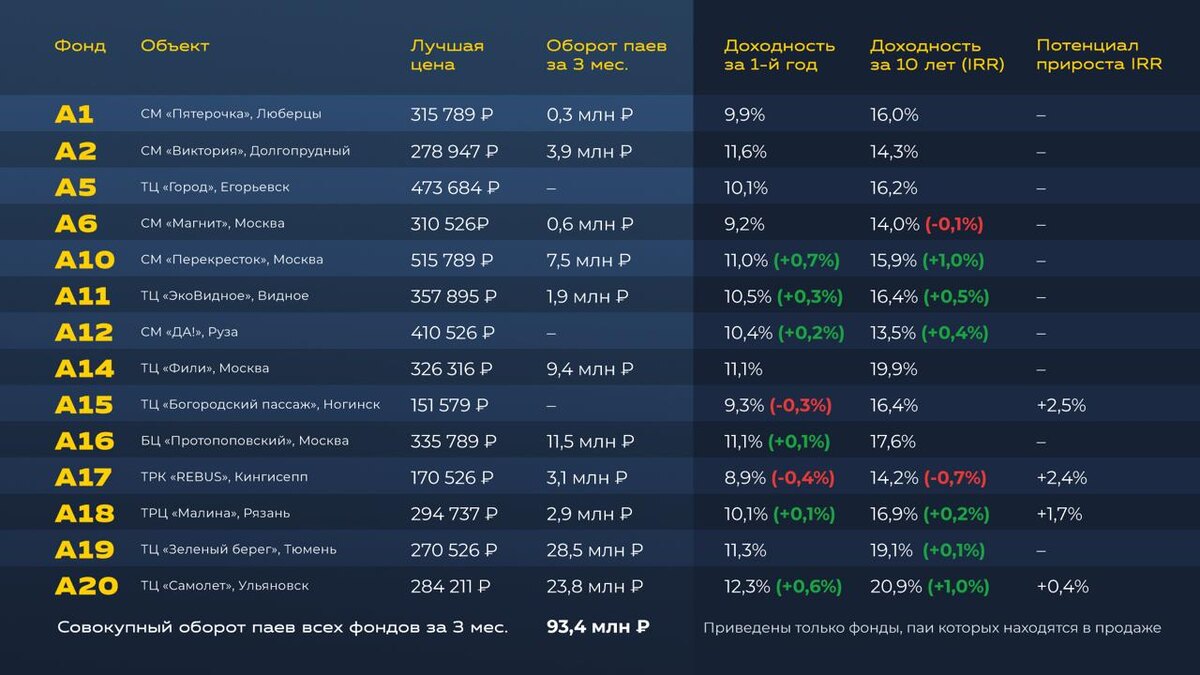 Вторичный оборот паев фондов на 17.10.2025 г. ➡️ Актуальные цены вы найдете в личном кабинете, раздел «В продаже». 🔸 Доходность зависит от цены пая конкретного предложения 🔸 Количество доступных паев ограничено Как происходит расчет показателей, объяснили здесь. — * Настоящее предложение не является публичной офертой #best