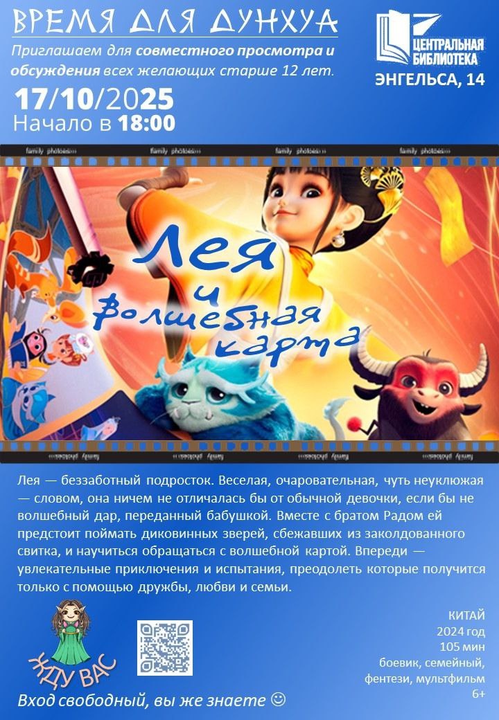 🎥Сегодня, 17 октября, в 18:00 Центральной библиотеке состоится совместный просмотр и обсуждение фильма «Лея и волшебная карта».