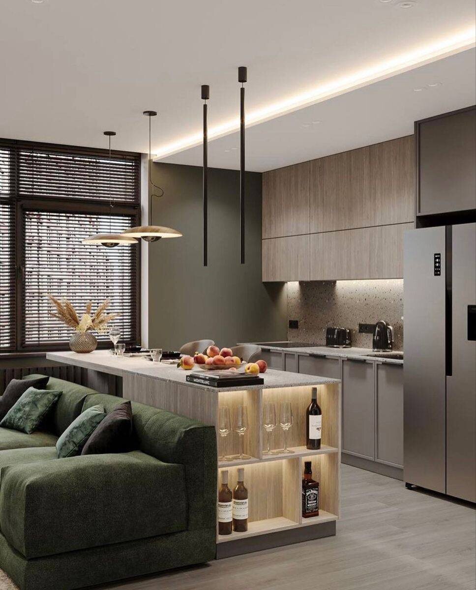 Барная стойка на полуострове: как мы увеличиваем функциональность кухни без потери места — идея для зонирования Мечтаете о дополнительной рабочей поверхности и удобной зоне для завтраков, но кухня слишком мала для острова? Откройте секрет идеального планировочного решения — барную стойку на полуострове. Когда места мало, а функционала хочется много Правильная планировка кухни — это всегда компромисс между желаниями и возможностями. Хочется и просторную рабочую поверхность, и уютный уголок для быстрых перекусов, и удобную организацию пространства. Но как этого добиться в стандартной квартире, где каждый сантиметр на счету? Кухонный остров — решение прекрасное, но не всегда выполнимое. Он требует много места. Именно тогда на помощь приходит более гибкая и практичная альтернатива — барная стойка, организованная на основе кухонного полуострова. Эта конструкция не отнимает ценную площадь, а наоборот, делает кухню более функциональной и современной. Полуостров вместо острова — гениально
