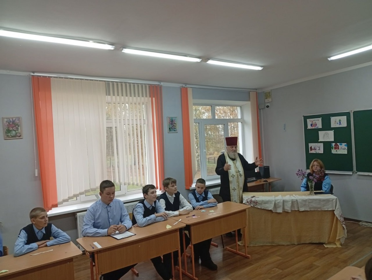 15 октября в рамках празднования Недели родительской любви в ГУО СШ аг. Худовцы прошла встреча настоятеля прихода Рождества Пресвятой Богородицы аг. Худовцы иерея Андрея Дмитриева со школьниками. Темой встречи стала «Жизнь в семье по заповедям Божьим».
