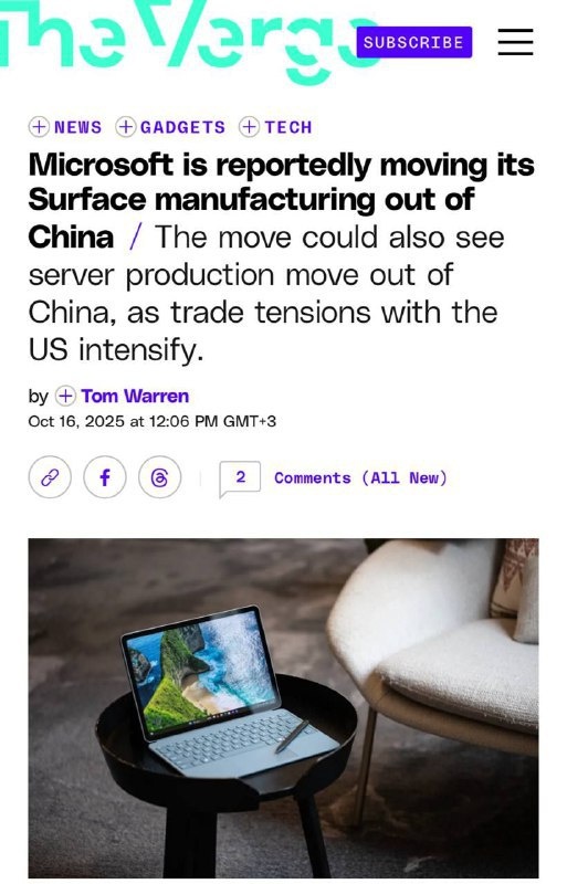 Техника может стать дороже из-за ухода крупных технологических компаний из Китая. Microsoft, Google, Amazon и Apple начали перемещать производство в Индию, Вьетнам, Таиланд и Саудовскую Аравию. Это связано с высокими пошлинами, локдаунами и новыми тарифами в США. Microsoft переносит изготовление устройств Surface, серверов и Xbox, Amazon адаптирует свои ИИ-кластеры во Вьетнаме и Индии, Google наращивает мощности в Таиланде, а Apple организует сборку iPad и HomePod во Вьетнаме. Постмейкер - автоматическое ведение канала 🤖 Анимация | СhatGPT-4 | Помощь с резюме
