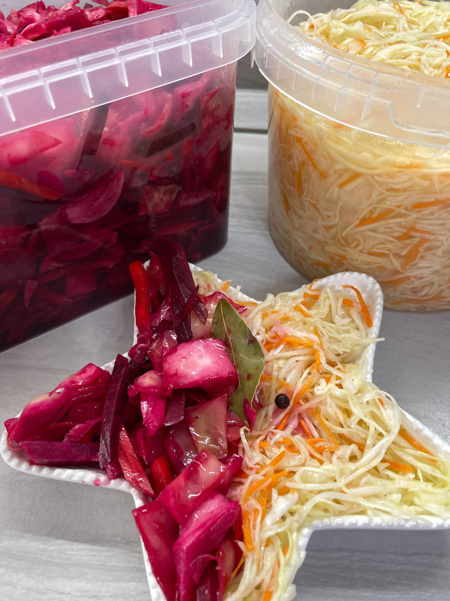 -для маринада в воду добавить сахар, соль и довести до кипения, как только смесь закипит, добавить раст.масло и уксус, перемешать и снять с огня, залить капусту горячим маринадом