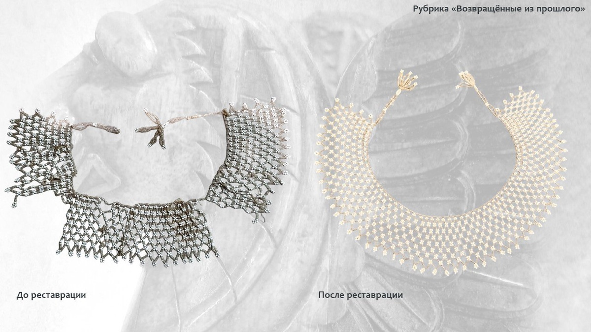Рубрика "ВОЗВРАЩЁННЫЕ ИЗ ПРОШЛОГО". Воротник поступил в реставрацию сильно загрязнённым и с большими утратами. В процессе реставрации загрязнения были удалены. Подобран бисер для восполнения утрат. По решению Реставрационного совета воротник был перенизан на новую нить с восполнением утрат подобранным бисером. #угличскиймузей #угличскийкремль #углич #воротник #бисер #возвращённыеизпрошлого #uglich