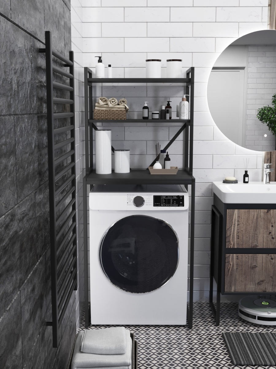 В типовых квартирах ванная комната часто напоминает крошечный склад. Все свободные поверхности (если они есть) заставлены чистящими средствами, банными принадлежностями. Больше всего достается стиральной машине — что только на ней не хранят: от запаса туалетной бумаги до корзины для грязного белья. Тесно, неудобно, а про эстетику и говорить не приходится. Если вы устали от этого хаоса — эта статья для вас. Кардинально решить проблему с организацией мест для хранения в санзуле можно с помощью ремонта: Но что делать, если ремонт не входит в ваши планы? На маркетплейсах и в мебельных магазинах можно найти самые разные конструкции стеллажей. Например, в линейке Anvikor представлены модели с металлическим каркасом и полками из ЛДСП разных цветов и фактур. Профиль покрыт полимерно-порошковой краской, которая защищает металл от влажности. Ножки закрыты специальными заглушками, чтобы не царапать пол. В упаковке есть все необходимое для самостоятельной сборки: пошаговая инструкция с иллюстрация