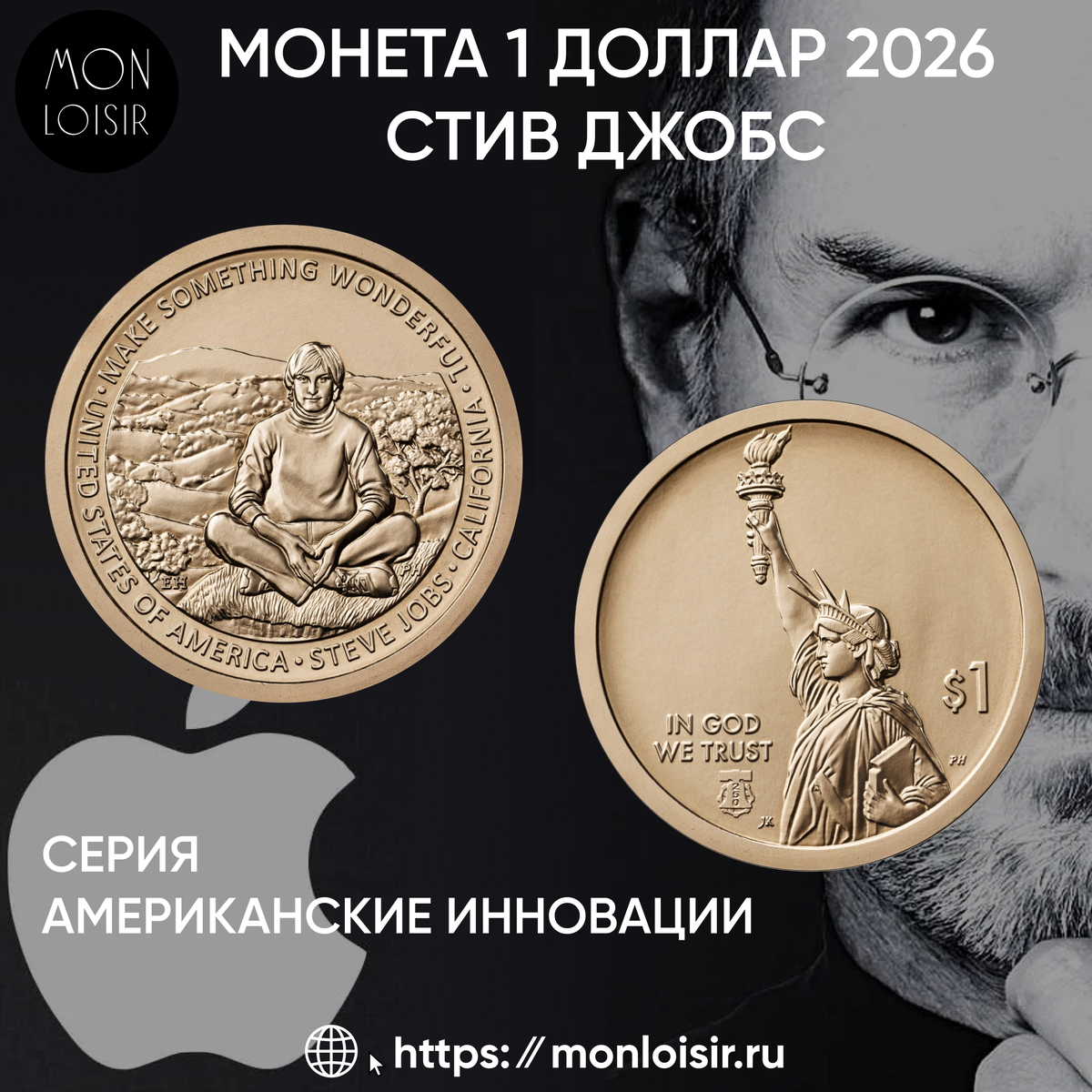 🔥 Горящая новость для коллекционеров! 🔥 Монетный двор США анонсировал выпуск сенсационной монеты номиналом 1 доллар в серии Американские инновации, посвященной штату Калифорния и его невероятному вкладу в технологический прогресс Америки! 🎯 Внимание ! В 2026 году лицом реверса монеты станет Стив Джобс как самый яркий и узнаваемый символ инновационного духа этого штата. Гений цифровой эпохи получит заслуженное признание на официальной монете США. 📌 Почему именно Калифорния? • Стив Джобс — уроженец Сан-Франциско, Калифорния • Основал Apple в Пало-Альто (Калифорния) • Создал Pixar в Эмеривилле (Калифорния) • Кремниевая долина — технологическое сердце Америки • Калифорния выбрала Джобса как самого знакового инноватора штата! 💥Следите за появлением новинки! Монета 1 доллар 2026 года Стив Джобс Калифорния обязательно займет свое место в нашем каталоге. ❗❗❗ Нумизматы, теперь на аверсе монеты появится новый символ! 🔔 На знаке «шестерни» теперь красуется Колокол Свободы с цифрой 250. Это