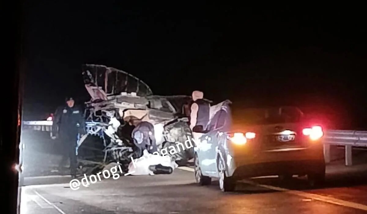 Ночью на трассе в Карагандинской области произошло страшное дорожно-транспортное происшествие, передает Azattyq Rýhy. На трассе Астана – Караганда столкнулись легковой автомобиль и КамАЗ. В соцсети опубликовано видео с места аварии. «Установлено, что 22-летний водитель автомобиля Toyota Estima, двигаясь в направлении города Караганды, совершил столкновение с задней частью грузового автомобиля КамАЗ, двигавшегося в попутном направлении. В результате дорожно-транспортного происшествия водитель Toyota Estima от полученных травм скончался на месте. Пассажир данного автомобиля доставлен в медицинское учреждение», – сообщили в пресс-службе Департамента полиции Карагандинской области. По факту ДТП возбуждено уголовное дело. В настоящее время по данному факту проводится расследование. ДП Карагандинской области в очередной раз призывает водителей строго соблюдать правила дорожного движения и не превышать скоростной режим.