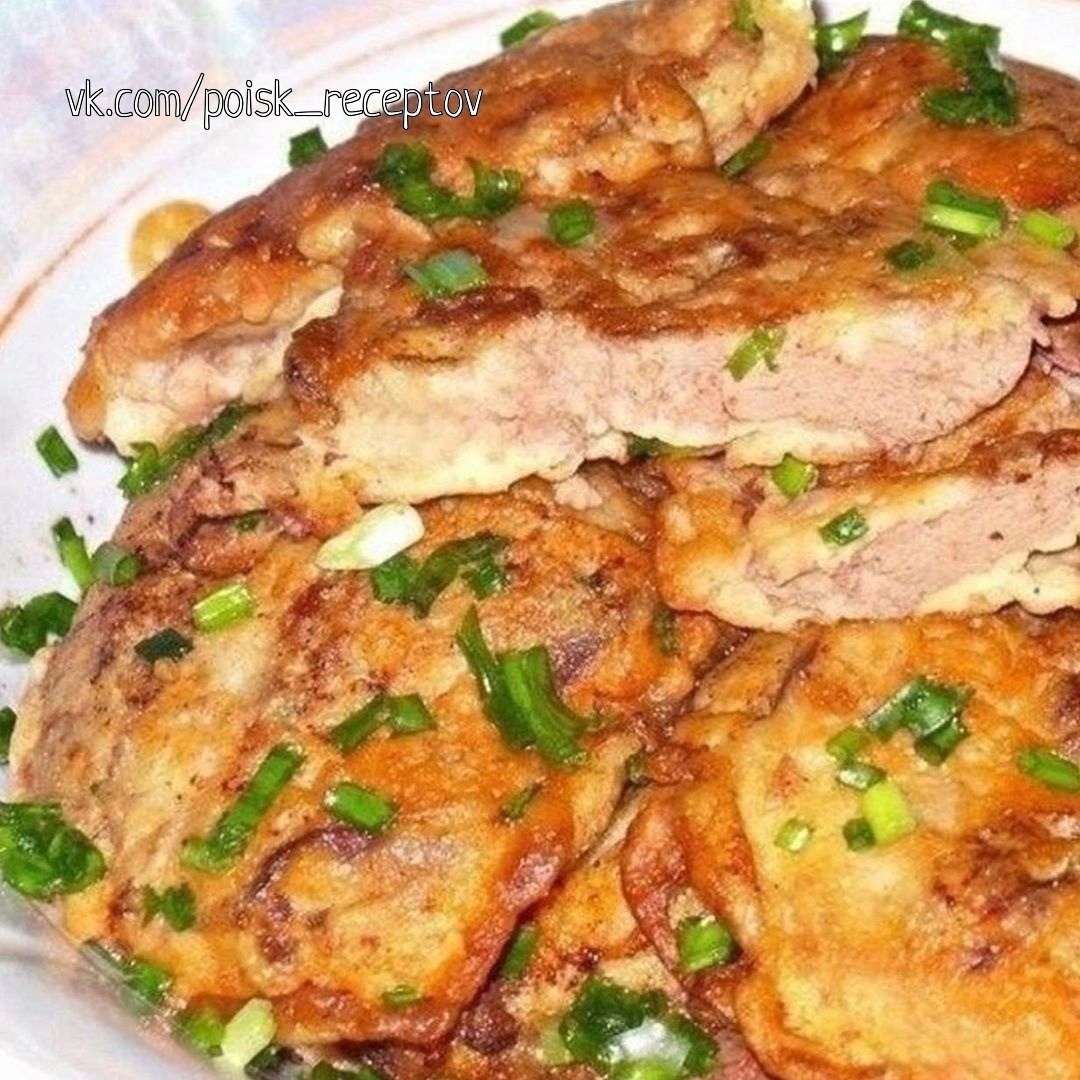 Подаём с овощами и зеленью. Кляр получается нежный, и позволяет сохранить печень от пересушивания.