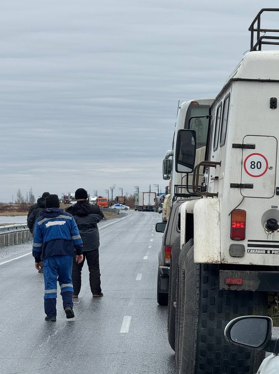 Из-за гололедицы на трассе, ведущей к Коротчаево, произошло ДТП: «КамА́З» столкнулся с отбойником. На месте работают сотрудники Госавтоинспекции.