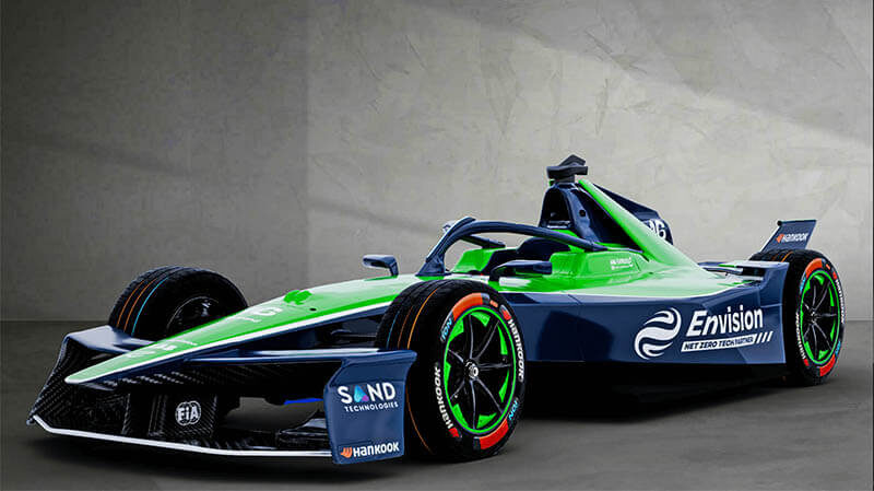 У «Envision Racing» два года были неоднозначными: после победы в командном чемпионате в девятом сезоне команда впоследствии сдала позиции. Робин Фрейнс и Себастьен Буэми, как и вся команда, казались потерянными и порой не мотивированными. После нескольких призовых мест, победы, а теперь и с новым дуэтом гонщиков, наметился позитивный поворот. Неизменным остаётся лишь культовая зелёно-синяя ливрея клиентской команды «Jaguar». Как и в восьмом сезоне, «Envision» выкрашен в зелёный и синий цвета. После небольших изменений в концепции в девятом сезоне, вероятно, связанных с переходом со второго поколения на третье, раскраска с тех пор остаётся неизменной. Верхняя часть болида Формулы E по-прежнему ярко-зелёная, с тонкой белой полосой, переходящей в тёмно-синюю нижнюю часть. Зелёные акценты на колёсных дисках также снова привлекут внимание. Команда «Envision Racing» разработала ливрею своего болида очень просто, с большим количеством открытого пространства, что, вероятно, связано с ограничен