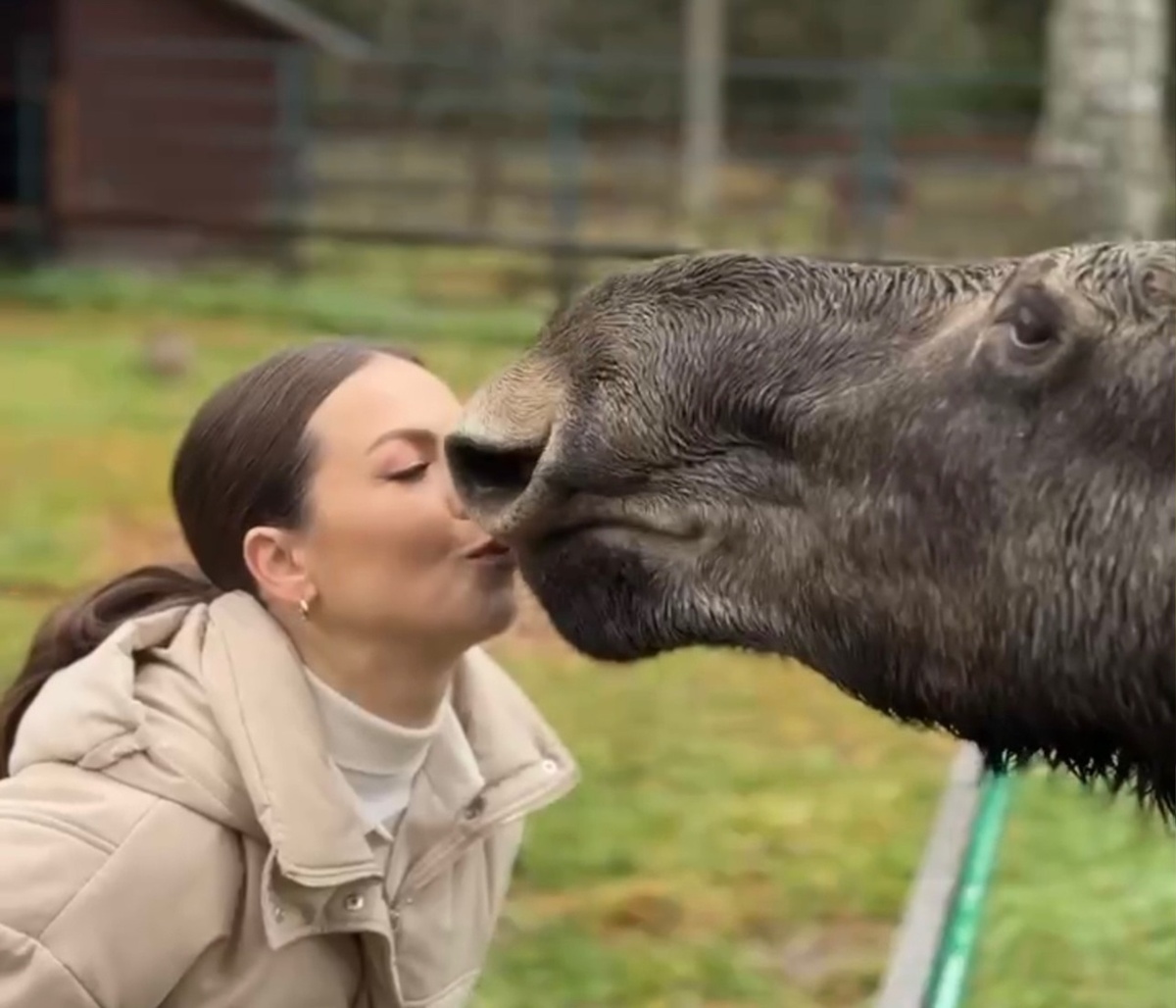 Телеведущая Светлана Абрамова поцеловала костромского лосика в носик