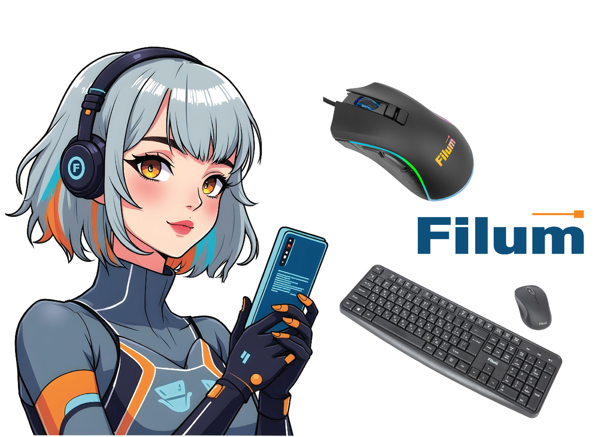 Filum располагает довольно широким ассортиментом периферии для рабочих станций – мыши, клавиатуры, шреддеры, сетевые фильтры, кронштейны для мониторов. Клавиатуры и мыши производятся в двух исполнениях: проводном и беспроводном, есть как сугубо «офисные» так и геймерские модели. Также предлагаются готовые беспроводные комплекты «клавиатура+мышь».