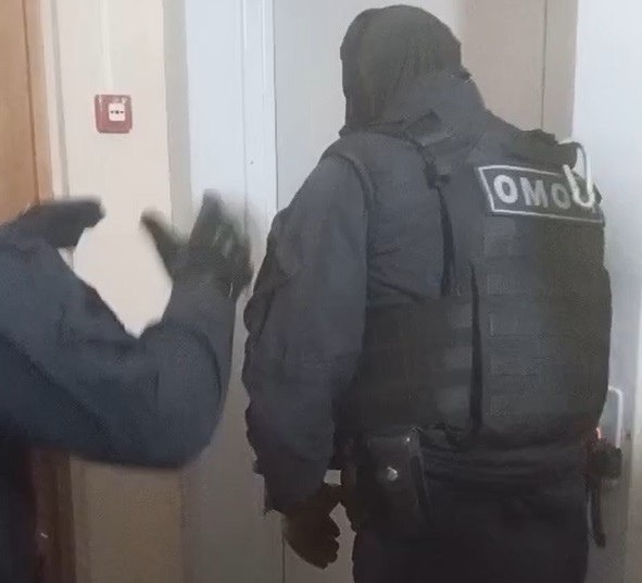Подозреваемого сотрудники ОМОН встретили у лифта и уложили на пол.