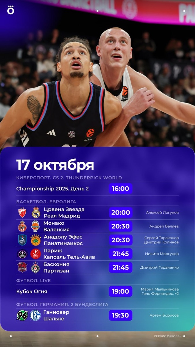 Евролига, возвращение европейских футбольных чемпионатов после паузы, гран-при Франции по фигурному катанию, киберспорт и многое другое — сегодня в Okko тебя ждет насыщенная программа! 💪🏻 https://okko.tv/s/4ot