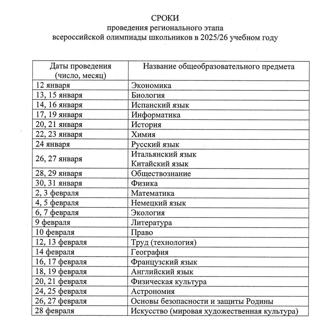 сроки проведения регионального этапа Всероссийской олимпиады школьников
