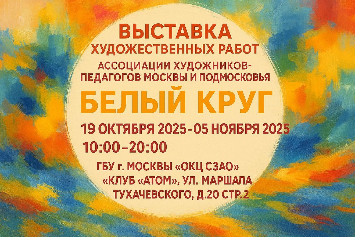 🎨 Выставка художественных работ «Белый круг» 0+ 🖼 Ассоциация художников-педагогов Москвы и Подмосковья 📍 Клуб «Атом», ул. Маршала Тухачевского, д.20, стр.2 📅 19 октября — 5 ноября 2025 🕙 10:00–20:00 🎟 Вход свободный С 19 октября по 5 ноября клуб «Атом» приглашает вас на уникальную выставку живописных работ Ассоциации художников-педагогов Москвы и Подмосковья — «Белый круг». 🖌 Каждый год художники собираются на пленэр в старинных русских городах. В этом году их вдохновением стал живописный берег Ладожского озера, уютный карельский городок Сортавала. На протяжении трёх недель мастера создавали картины, делились опытом, проводили мастер-классы и вдохновлялись природой Карелии — Ладожскими шхерами, островом Валаам и парком Рускеала. 🌿 На выставке представлены работы, рожденные в этом путешествии — наполненные светом, атмосферой северной природы и искренним вдохновением. В последний день художники представят новые произведения, созданные во время пленэра. 📞 +7 (499) 192-79-46 ?