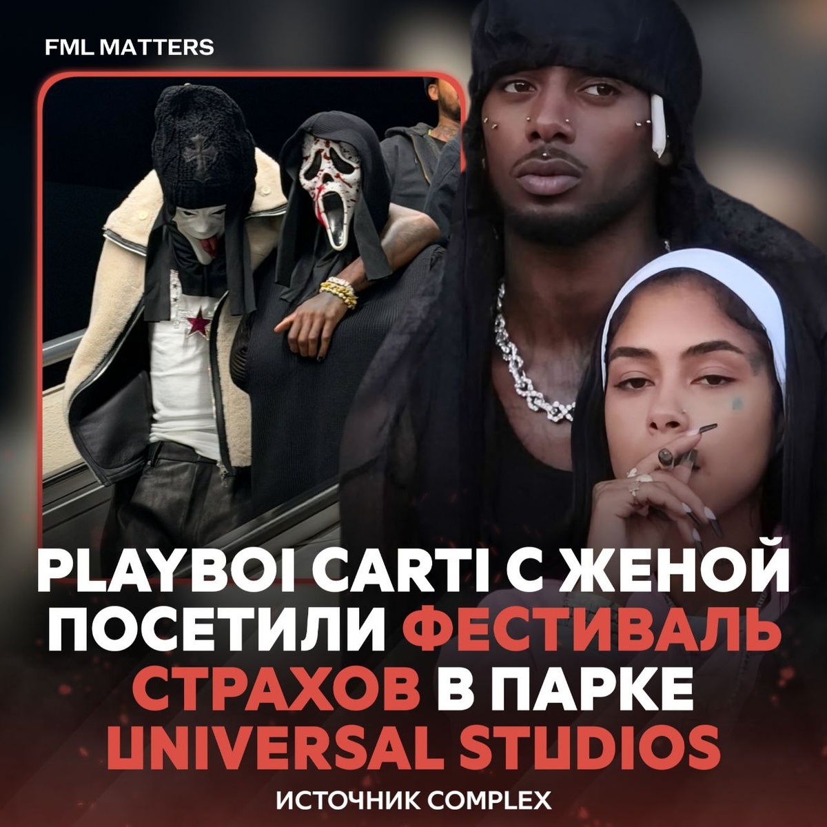 🎃 PLAYBOI CARTI И GIO ПОСЕТИЛИ ФЕСТИВАЛЬ СТРАХОВ! Рэпера с женой заметили на Halloween Horror Nights в парке студии Universal — ежегодном фестивале страхов с лабиринтами, зомби-шоу и аттракционами по мотивам культовых хоррор-фильмов вроде «Крика», «Хэллоуина» и «Чужого» Норм образы? ❤️🔥 / 👎 💀 FML MATTERS