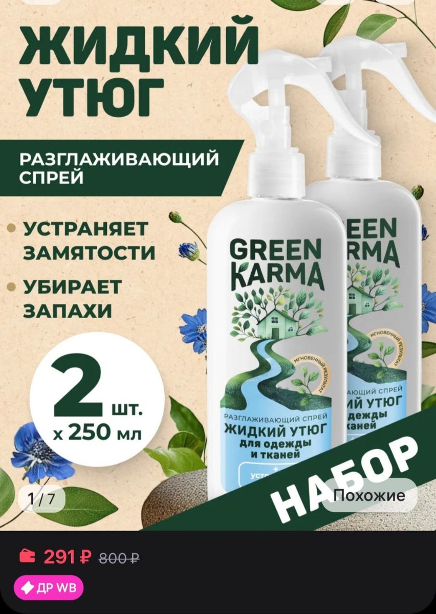 Набор жидкий утюг для одежды разглаживающий спрей-рефрешер Green Karma Ссылка на товар👇 https://www.wildberries.ru/catalog/399134525/detail.aspx?size=576413965 #скидкапятницы ✅ Подписаться ➡️Это нам Надо