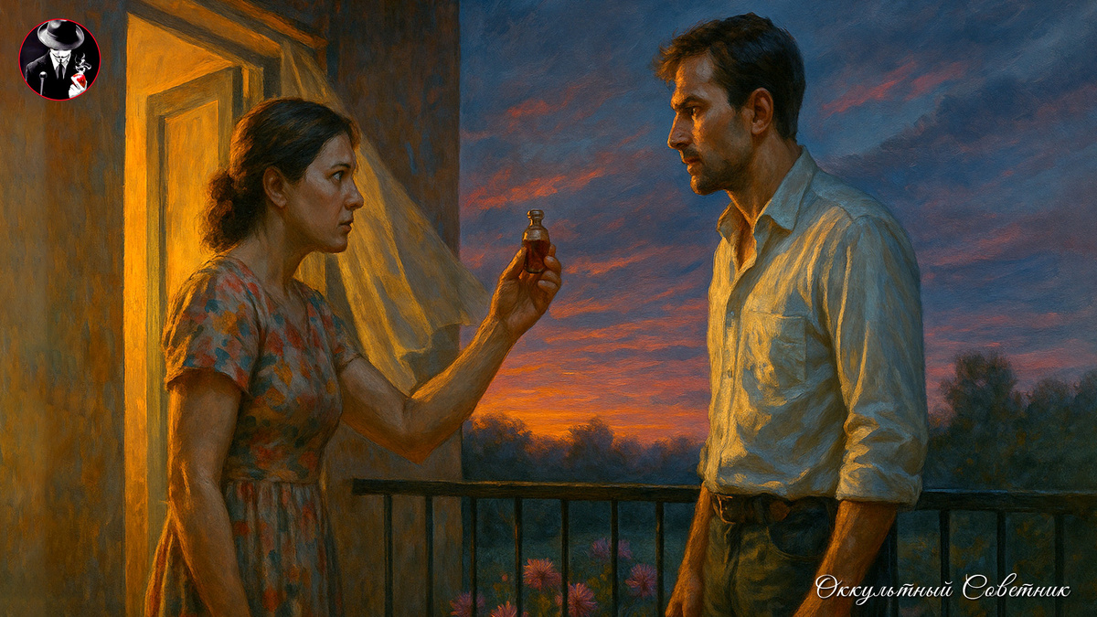 Первой забила тревогу Вера Павловна. Она стала следить за невесткой, подмечать странности. Как та шепчет что-то над едой, которую готовит для Виктора. Как прячет бутылки с мутной водой за банками с вареньем. Как собирает волосы мужа с расчёски и сжигает их на сковородке, бормоча непонятные слова.