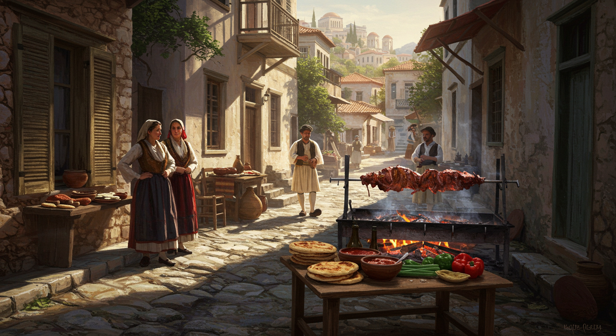 Мясо медленно обжаривалось на вертеле, пропитываясь специями, а затем заворачивалось в свежеиспечённую лепёшку с овощами. Кстати, «гирос» по-гречески — это «вращение», и именно этот эффект вертела делает мясо таким нежным.