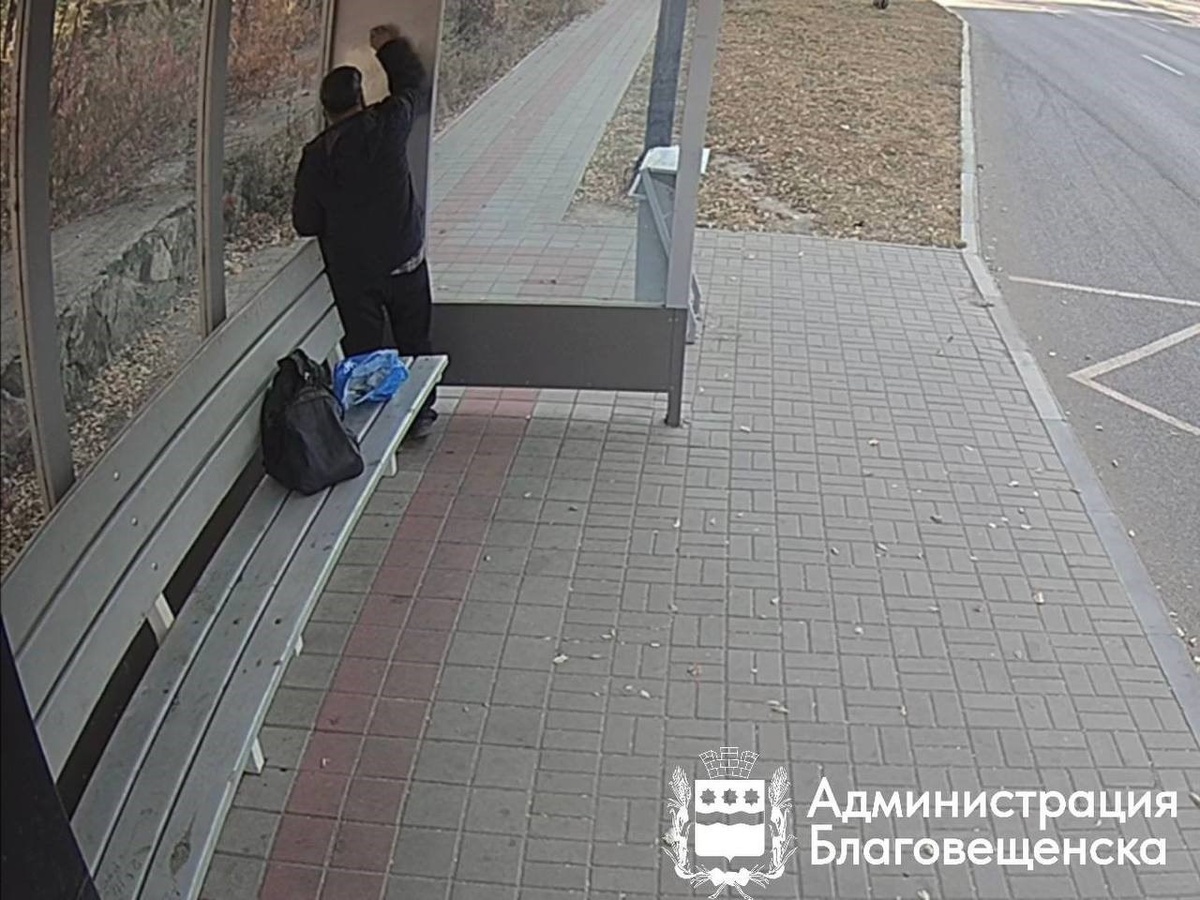 🎨Настойчивый «художник» с маркером орудует в Благовещенске Жертвой его творческого порыва вновь стала автобусная остановка на улице Пушкина. Надпись, которую мужчина оставил в этом павильоне в прошлый раз уже стёрли. Но он не сдался и вновь отметился на остановке. 💸Камеры «Безопасного города» засняли хулигана за работой. Все материалы уже передали в полицию. Мужчине грозит штраф за порчу муниципального имущества. #АОТВ Фото: администрация Благовещенска