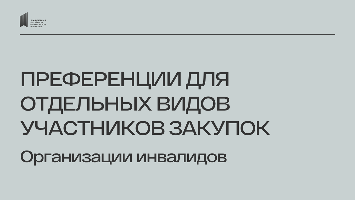 Преференции для отдельных видов участников закупок. Организации инвалидов