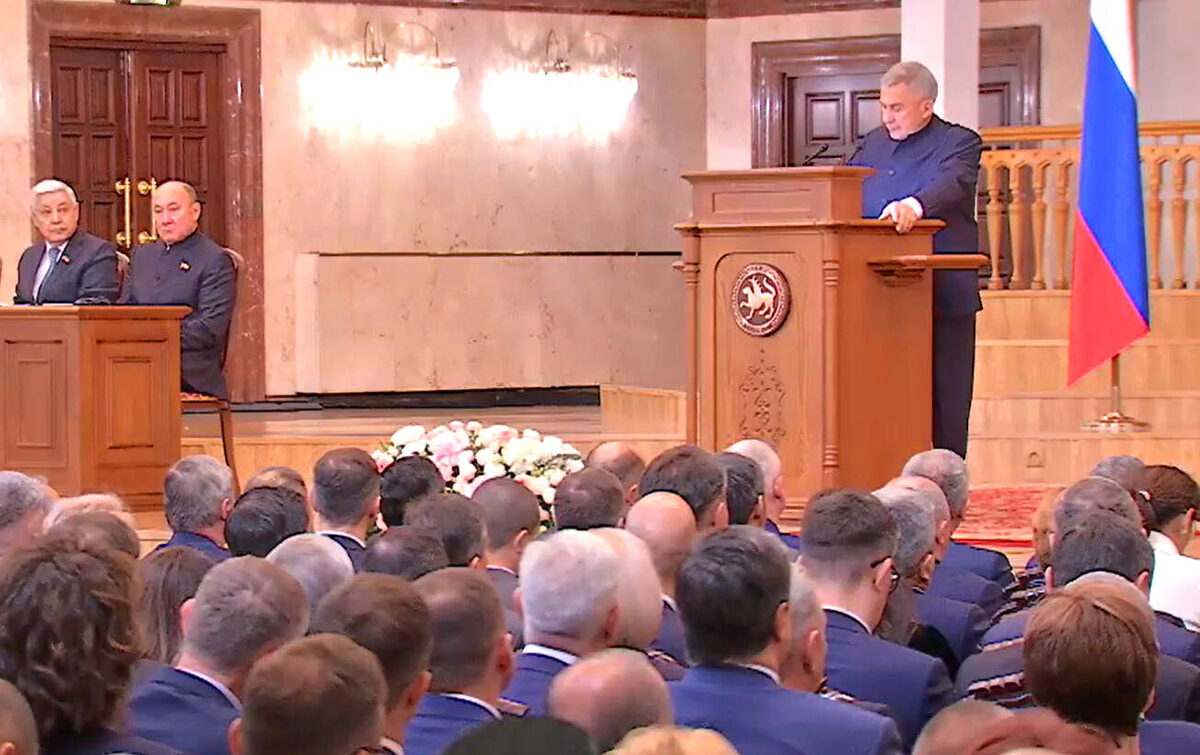 Автор: Александр Хевронин За мужество и героизм, проявленные в ходе СВО, 17 татарстанцев удостоены высокого звания «Герой России», к сожалению, 8 из них – посмертно. Об этом заявил Раис Татарстана Рустам Минниханов, обращаясь с ежегодным посланием Госсовету РТ. Минниханов подчеркнул, что 3285 уроженцев Татарстана посмертно награждены орденом Мужества. «Патриотизм и самоотверженность земляков, отдавших жизнь за Отечество, навсегда останутся в наших сердцах. Их подвиг – образец настоящего героизма и преданности Родине», – заявил Раис РТ, после чего все присутствующие почтили память погибших минутой молчания. Напомним, что прямую трансляцию ежегодного послания Минниханова Госсовету РТ можно посмотреть на телеканалах «ТНВ-Татарстан» и «ТНВ-Планета». Также трансляция доступна в официальной группе телерадиокомпании в соцсети «ВКонтакте» и на сайте телеканала. На оглашение послания приглашены руководители всех ветвей власти Татарстана и представители федеральных органов власти, а также руково