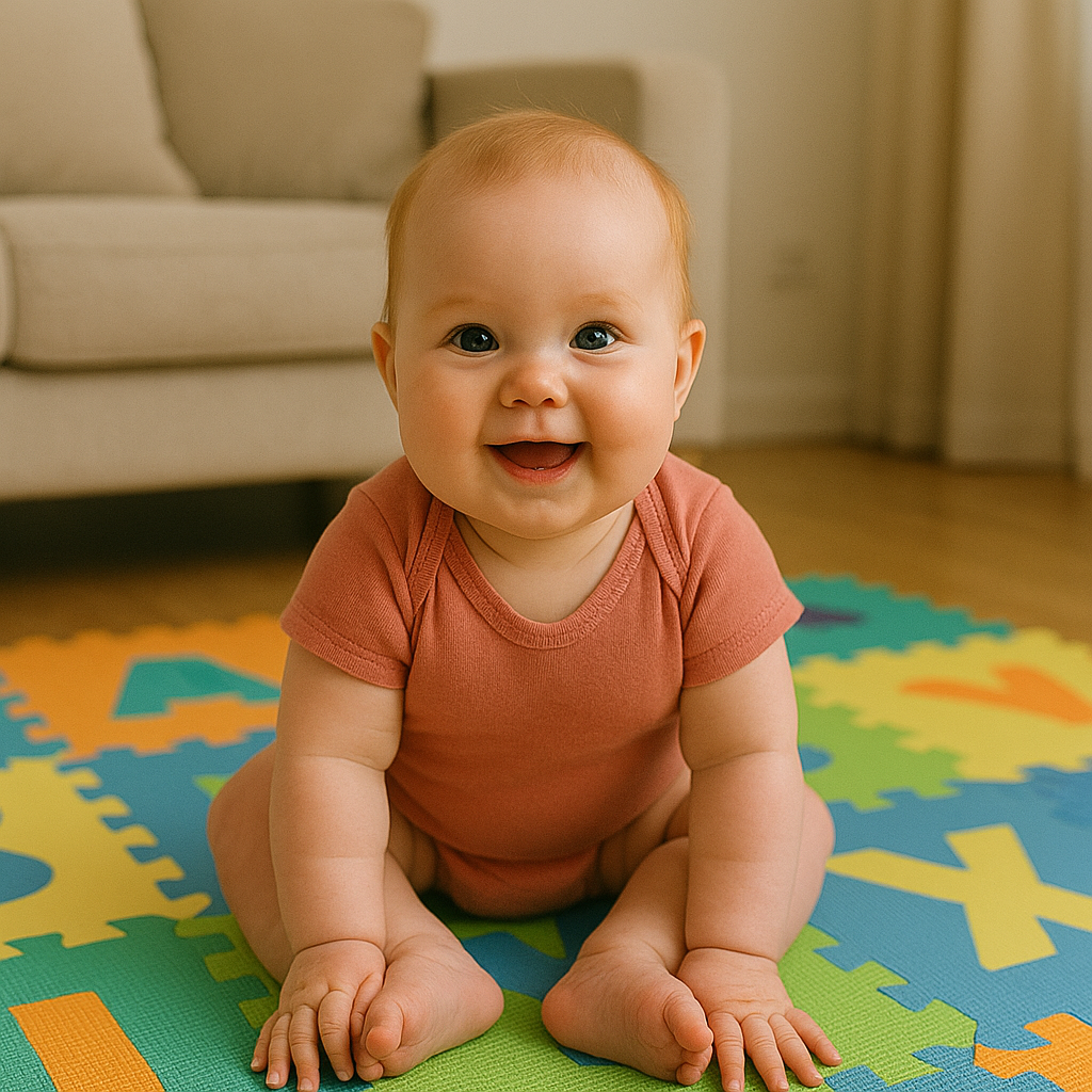 Я краем глаза увидела, как моя малышка, лежавшая на животе на пледе, вдруг упёрлась руками, подтянула ножки — и СЕЛА. САМА. Без поддержки. Как будто делала это всю жизнь. Как будто не вчера ещё беззвучно пускала пузыри, лежа на боку.