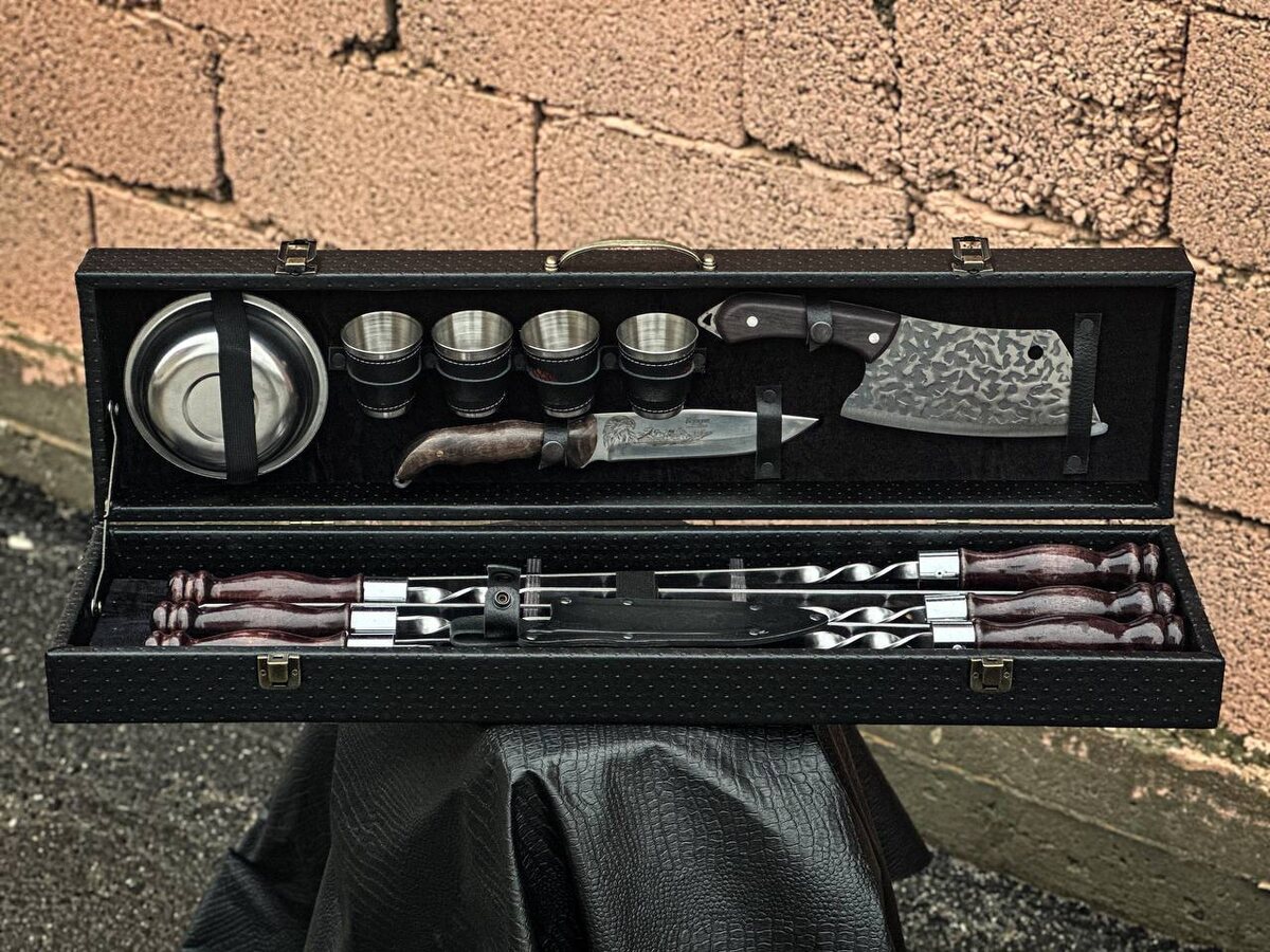 Бюджетный шашлычный набор в кейсе снова в наличии🔥🔥🔥 Шампура с деревянной ручкой покрытой лаком 6 шт Кухонный топорик для рубки костей, так же подойдёт для мелких дров Разделочный нож сталь 40х13 Маленькие стаканчики 4шт Глубокие Тарелки 4шт ⚪️цена 6.500₽ ЗАКАЗАТЬ В ВАТСАПЕ ЗАКАЗАТЬ В ТЕЛЕГРАММЕ ЭКСКЛЮЗИВНЫЕ НОЖИ 👑 ОТПРАВКА И ОТЗЫВЫ ⚪️+79280609590