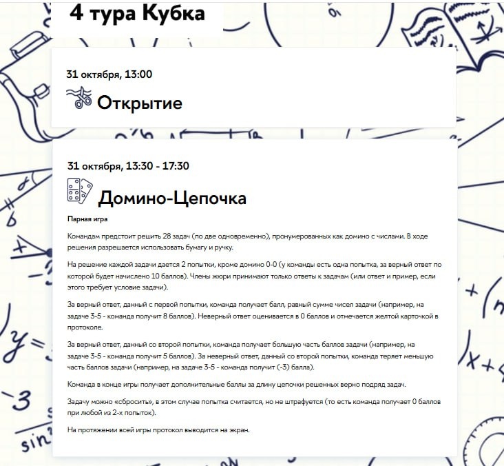 Участвуя в Кубке, Вы сможете попробовать свои силы в решении математических задач олимпиадной направленности, развить умение вести диалог и аргументировать свою точку зрения в условиях "мозгового штурма" и, конечно, приобрести новых друзей из разных уголков страны!