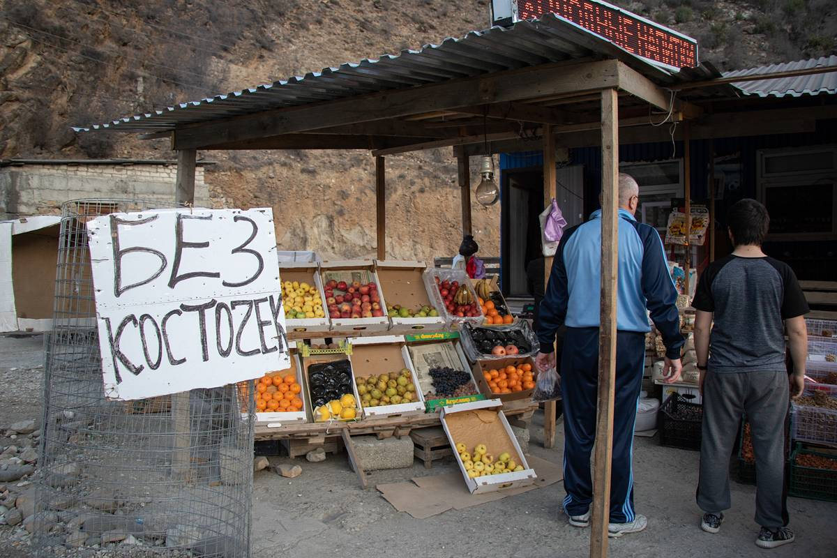 Дорога из столицы Дагестана в Гимры ведет через Буйнакский перевал, потом четыре километра по самому длинному тоннелю в России — и мы по ту сторону Гимриского хребта. Здесь всегда теплее. Яркое солнце припекает так, будто пытается обнять и отогреть после обдуваемой ветрами Махачкалы. У развилки возле села к самому краю трассы прибился магазинчик — полки с фруктами, орехи, черная жевательная смола. На небольшом куске фанеры краской выведено «хурма без косточек».