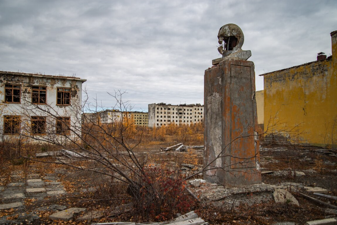 Почему страшно: Город-призрак, жители которого были насильственно переселены, а их дома — уничтожены. Когда-то здесь кипела жизнь шахтерского поселка. Сегодня — это безмолвные руины на фоне суровой тундры. Пустые глазницы окон, разбитая техника и ощущение, что время здесь остановилось в один миг, создают гнетущую атмосферу. Ходят слухи, что в пасмурные дни здесь можно услышать отголоски прошлой жизни.
