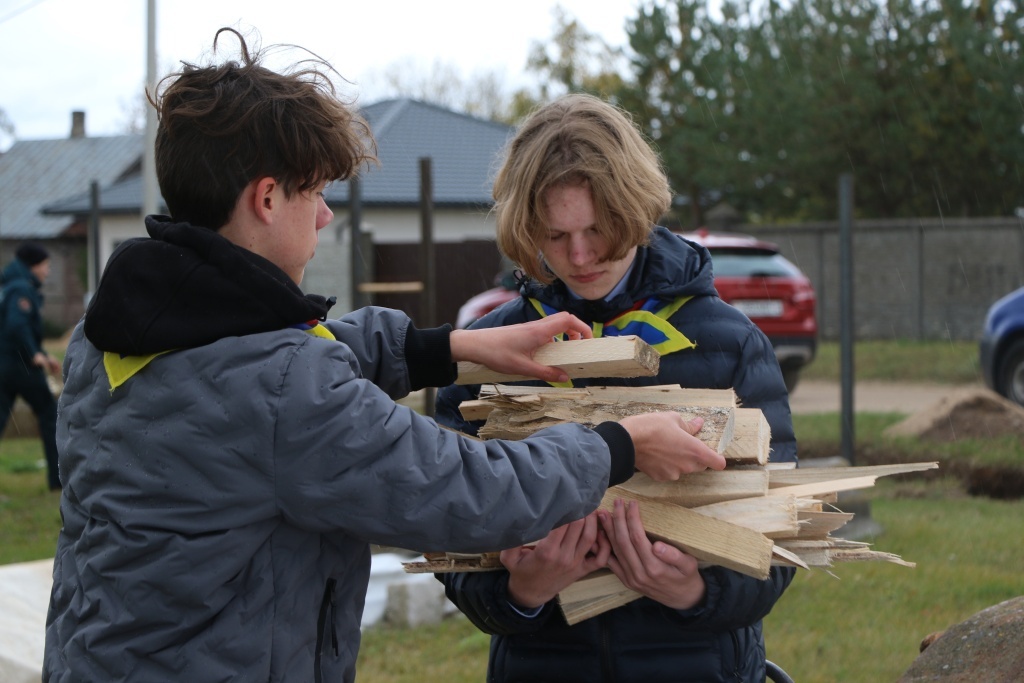 Спасатели убедили женщину в необходимости оборудования жилых комнат извещателями: во сне человек не слышит запахов, а прибор мгновенно среагирует на дым и разбудит. Пока Артем Сенюта устанавливал АПИ, пресс-секретарь Гродненского областного управления МЧС Ольга Адиева привела убедительную статистику. Только в текущем году благодаря положительной сработке автономных пожарных извещателей спасены шесть жителей Гродненской области. А тем временем школьники Путришковской СШ без дела не скучали: убирали остатки растительного мусора с огорода, носили дрова. По словам педагога-организатора Карины Скерсь, старшеклассники с энтузиазмом откликаются на такие инициативы.
