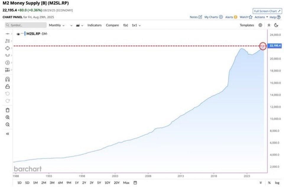 🔸Денежная масса M2 в США достигла нового рекордного максимума в $22,2 трлн