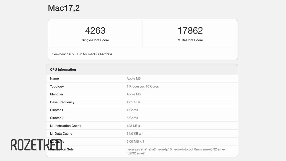 Новейший чипсет Apple прошёл тесты производительности и показал исторический рекорд: показатель мощности на одно ядро составил 4263 балла, что является самым высоким результатом в истории. Ближайший конкурент в лице AMD Ryzen 9 9950X3D набирает 3400 баллов.