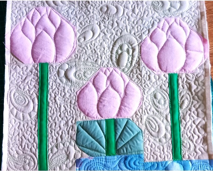 В этот раз я чередовала блоки с аппликацией и блоки с классическим пэчворком. Правда в блоки с лоскутной сборкой я умудрилась добавить аппликацию тоже.