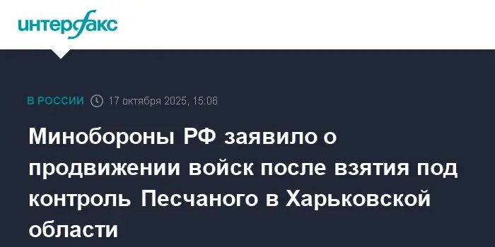Минобороны РФ сообщает о продвижении группировки "Запад" после взятия Песчаного в Харьковской области Минобороны РФ сообщило о продвижении группировки «Запад» в Харьковской области после взятия села Песчаное. Подразделения используют артиллерию, огнеметные системы и БПЛА. Захвачены военные трофеи, пленные. Отмечается высокий моральный дух и профессионализм личного состава. 📢 Подробнее: uralnovosti.ru 🏞 Фото автора: www.interfax.ru 📢 Подписывайтесь на наш канал: uralnovost