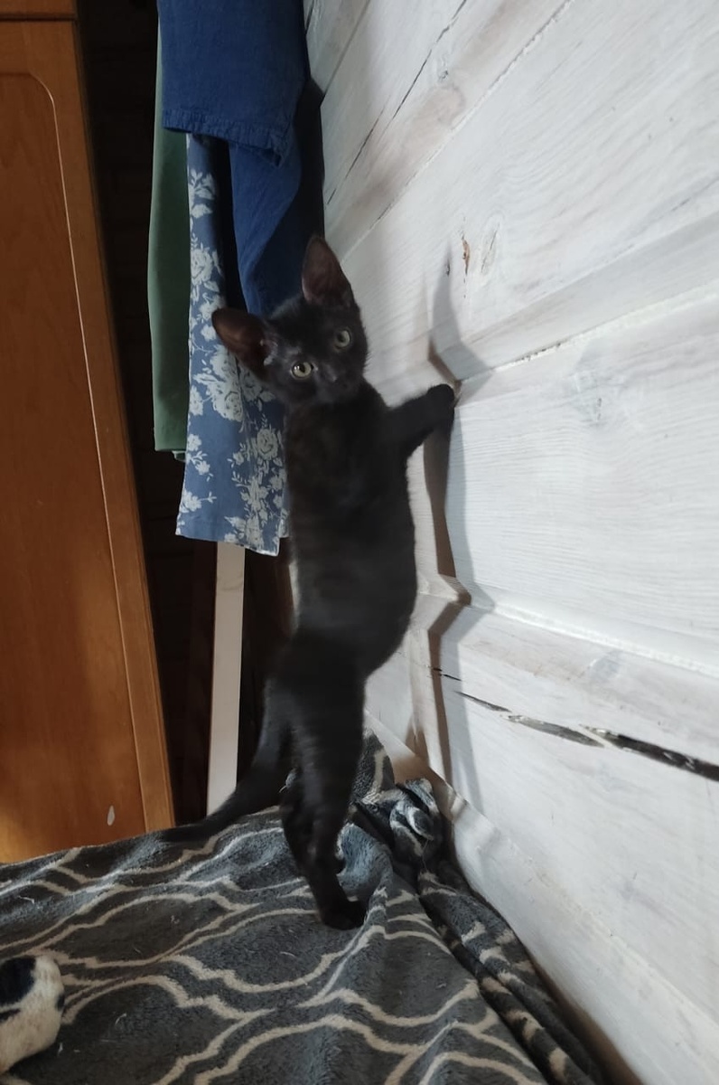 Этот маленький мальчик - Гаврош. Он - один из тех котят, которых спасли из семьи маргинальных людей, семьи, где котята были у детей вместо игрушек. Семьи, где котят мо ри ли голодом. Семьи, где котята убегали за Радугу не успев подрасти, до такой степени их му ча ли. Крохам повезло, что их спасла старшая дочь этого семейства, передав пушистиков волонтерам. Гаврошу на тот момент было около 2 месяцев. Несмотря на все то, что ему пришлось пережить, он не потерял любовь и веру в людей. Это был заводной, ласковый, общительный и игривый котенок. Казалось, что он был очень рад оказаться на передержке, не жаловался на недостаток внимания, но, при возможности, старался получить свою порцию ласки; не скучал по прежнему дому и хозяевам, как это нередко бывает со свежевыброшенными/отказными питомцами; не привередничал в еде, а "мёл" все подряд (сказывалось голодное детство). Когда малыш прошел все необходимую подготовку, ему начали искать новый дом. "Детский дом" (а передержка на тот момент была п