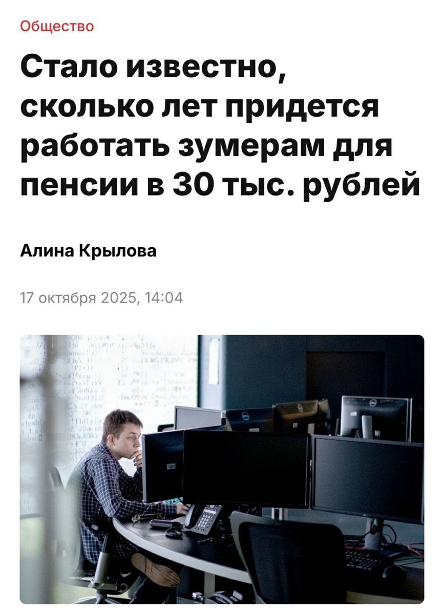 Зумерам придётся работать 20 лет БЕЗ ПЕРЕРЫВОВ для пенсии в... 30 тысяч рублей — эксперты.