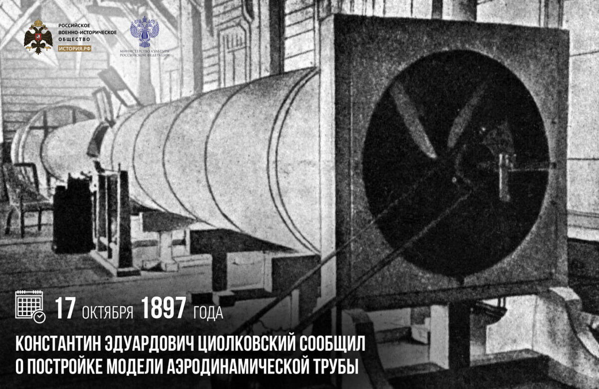 17 октября 1897 года Константин Эдуардович Циолковский сообщил о постройке модели аэродинамической трубы