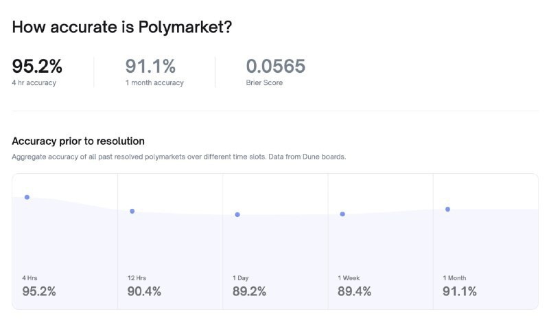 Прогнозы на Polymarket достигают точности свыше 95%, что является рекордом для платформы ставок на события. Почти любые сценарии удается предсказать заранее, зачастую за несколько часов. Пользователи получают хорошую прибыль — один участник на этой неделе заработал свыше $1,2 миллиона на своих ставках. Матрицу, похоже, наконец-то взломали. Для более подробной информации о точности прогнозов, посетите Polymarket. Постмейкер - автоматическое ведение канала 🤖 Анимация | СhatGPT-4 | Помощь с резюме