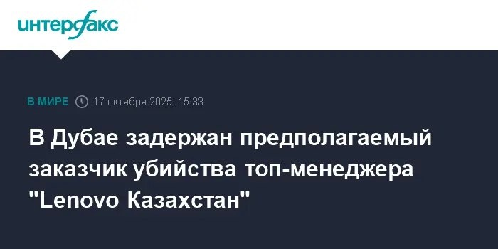 В Дубае раскрыто дело о заказчике гибели Ермека Жакипжанова из Lenovo Казахстан В ОАЭ задержан гражданин Казахстана, подозреваемый в организации заказного убийства топ-менеджера Lenovo Казахстан Ермека Жакипжанова. Преступление предположительно связано с имущественным спором. Задержание стало результатом международного сотрудничества. Исполнители убийства также задержаны. Общественность выражает надежду на справедливое расследование. 🔗 Подробнее: dmvv.ru 📷 Фото от: www.interfax.ru 📢 Следите за новостями: dmvv_news