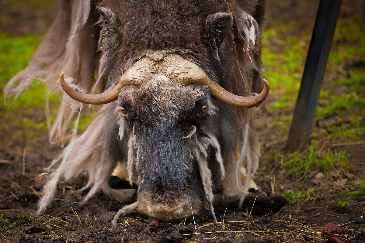 В парке «Роев ручей» проживают и готовятся к наступлению зимы три овцебыка: самка Галюша, самец Таймыр – её сын, который родился 12 июня прошлого года, в День России (символично, не правда ли?), и еще одна самка, пожалуй, самая знаменитая – Алана, спасенная мужественными и очень хорошими людьми на Таймыре (но это уже отдельная история)